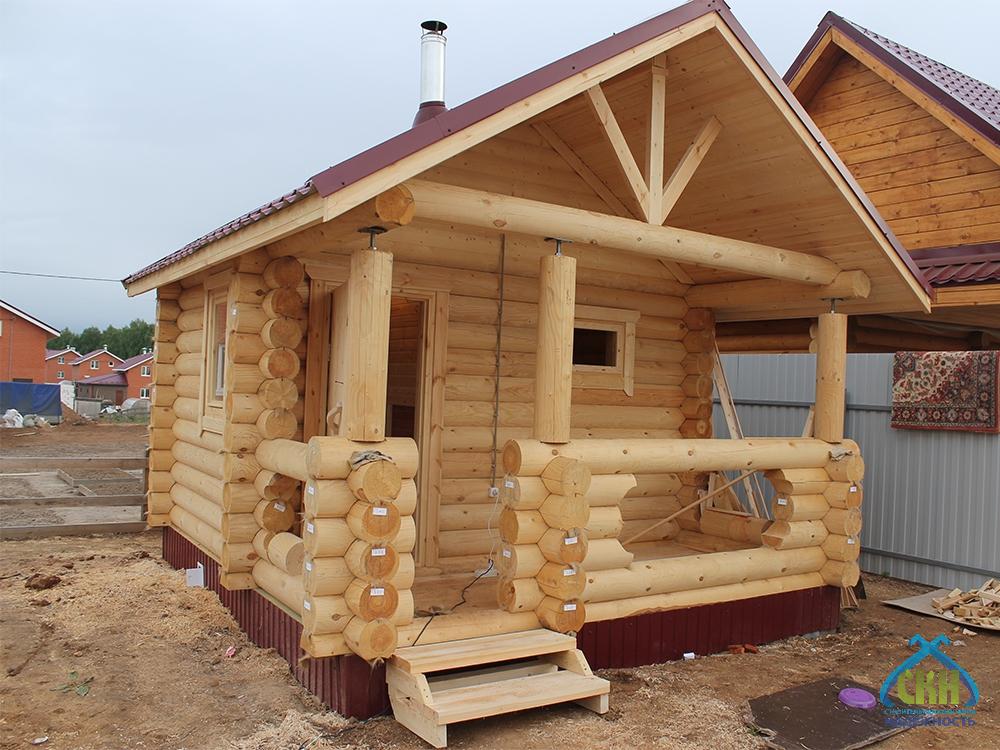 Высота - 1-й этаж 2,0 м. Наружние и внутренние стены из оцилиндрованного бревна, естественной влажности d-200 мм (сборка в чашу), хвоя. Лаги перекрытий и стропильная система 50х100 мм, с шагом 590 мм. |