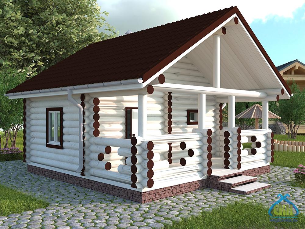 Баня из бревна 6×7 со многощиповой крышей
