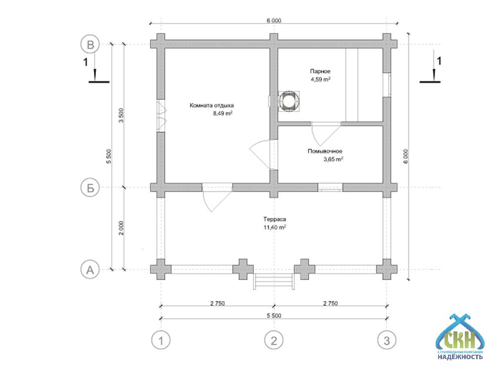 Стильная баня из оцилиндрованного бревна 6×6 выполнена в классическом исполнении. Общая площадь — 28,13 кв. м., парная — 4,59 кв. м., помывочная — 3,65 кв. м.. Комната отдыха на 8,49 кв. м. дополняется гостевой зоной на 11,4 кв. м.. Строительство точно в срок даёт уверенность в планах. Банный ритуал превращается в ритуал блаженства за счет ароматов натуральной древесины.