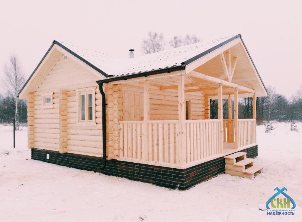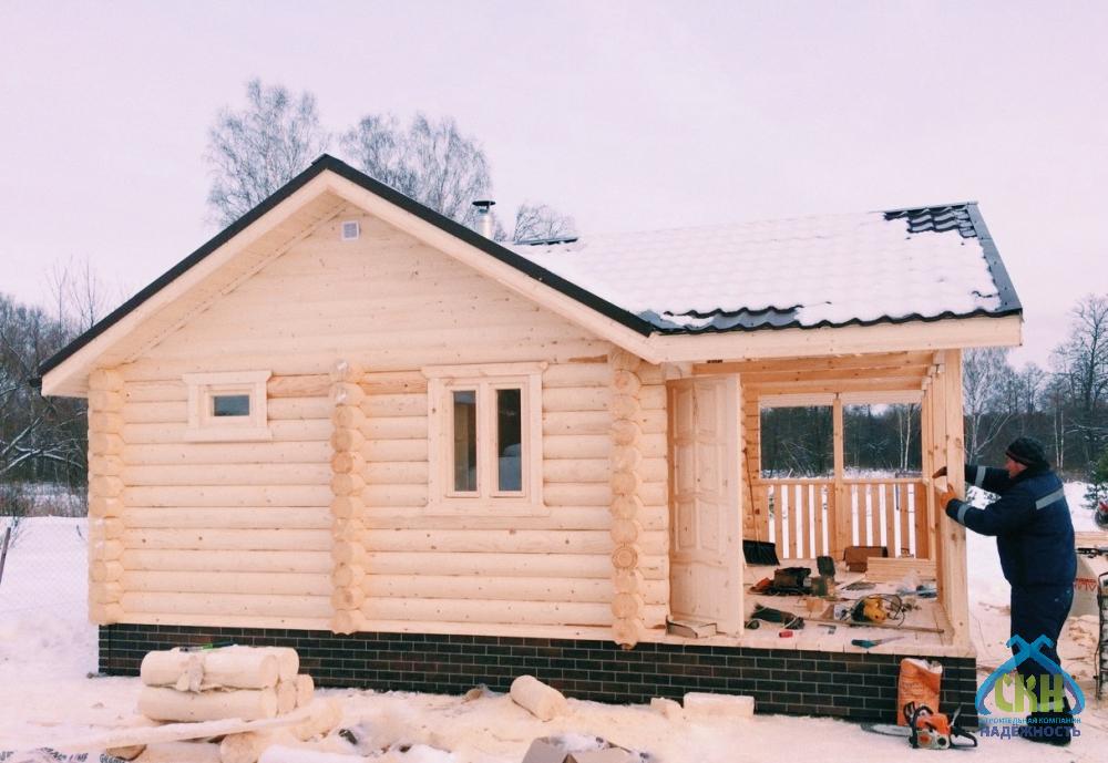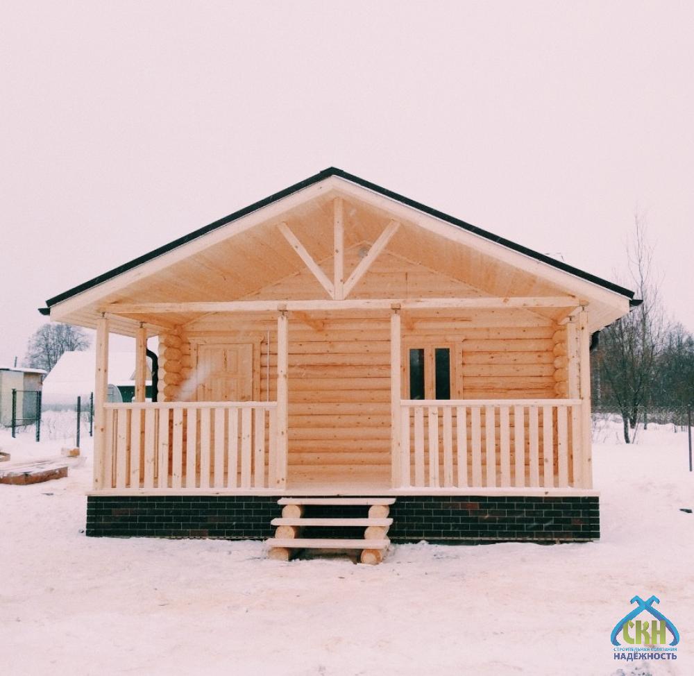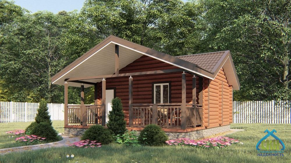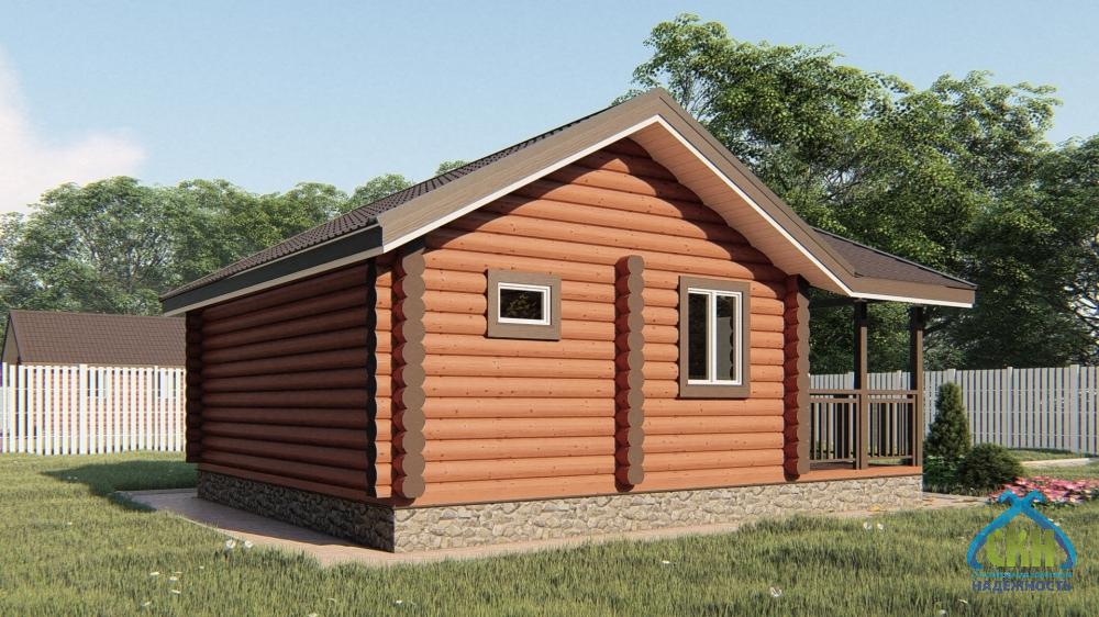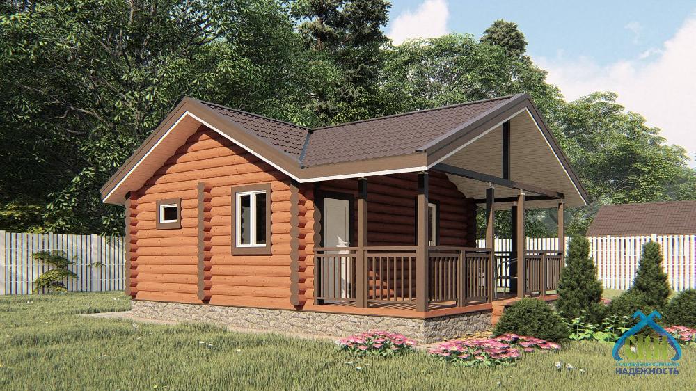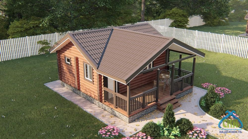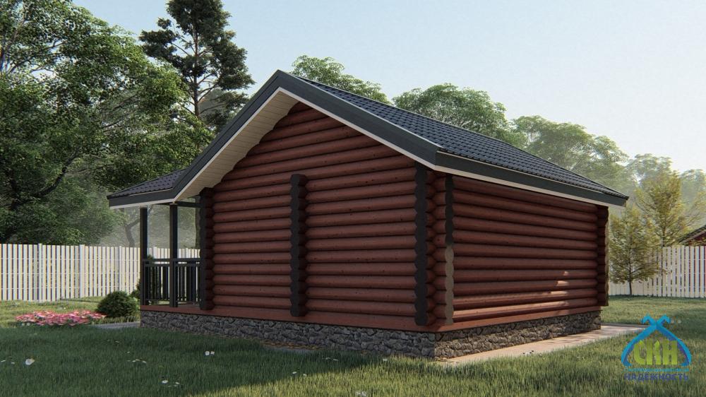 Баня из бревна 6×8 с комнатой и террасой