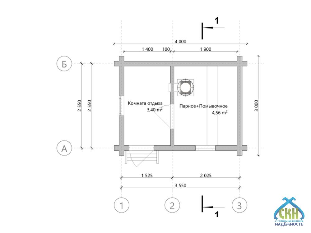Компактная и вместительная баня из профилированного бруса 4×3 с совмещенной парной и помывочной отличается продуманностью планировки. Общая площадь — 7,96 кв. м., совмещенная парная и помывочная занимают 4,56 кв. м., а комната отдыха — 3,4 кв. м.. Баня выполнена в классическом стиле с двухскатной крышей. Баня для души и тела станет любимым местом встреч с семьей или друзьями.
