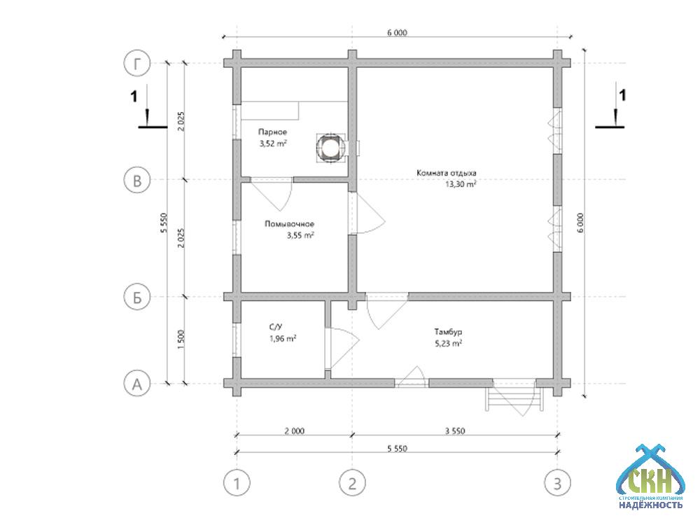 Баня из профилированного бруса 6×6 с вальмовой крышей отличается оригинальным архитектурным стилем и вместительностью. Общая площадь — 27,56 кв. м., парная и помывочная занимают 3,52 кв. м. и 3,55 кв. м.. Здесь есть все для банного ритуала: комната отдыха, душевая, крыльцо, чтобы освежиться на воздухе. Банный спа-ритуал раскрывается во всей полноте — от первых парных объятий до расслабляющего отдыха в тепле деревянных стен, наполненных ароматом живой древесины.