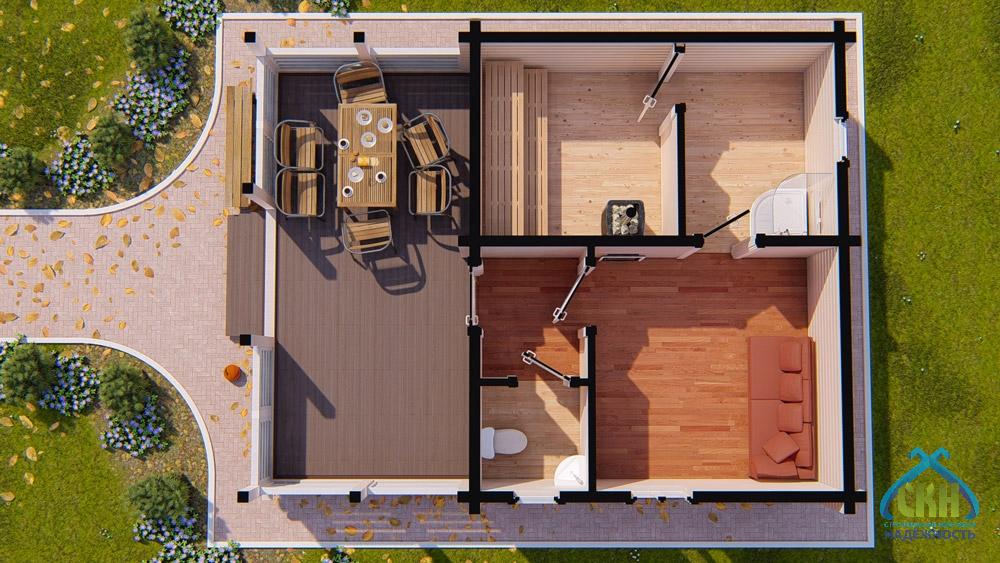 Баня-дом из бруса 9х7 с гостевой комнатой