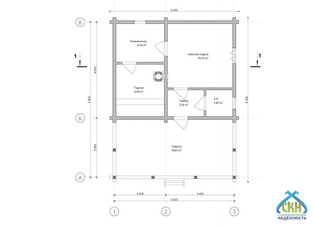 Современная баня из профилированного бруса 6,5×8 в современном стиле с удобной планировкой обеспечивает комфорт и функциональность. Общая площадь — 43,18 кв. м., парная и помывочная занимают 6,49 кв. м. и 4,76 кв. м.. Комната отдыха получилась просторной и уютной — идеальное место, чтобы расслабиться после парной. Санузел добавляет удобства, всё организовано практично и по-домашнему. Терраса стала изюминкой — на ней приятно сидеть с чаем или просто наслаждаться тишиной и свежим воздухом. Крыльцо небольшое, но тёплое и гостеприимное, задаёт доброжелательный тон всей бане. Крыша двухскатная придаёт строению стройность, а современный стиль делает его выразительным. Всё продумано до мелочей, поэтому баня радует не только функциональностью, но и внешним видом. Банный ритуал здоровья начнется в этом пространстве.