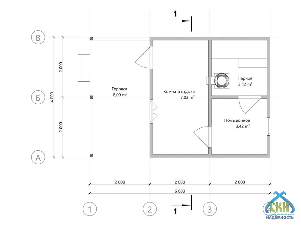 Каркасная баня 4×6 одноэтажная располагает 21 кв. м. включая парную 3 кв. м. помывочную 3 кв. м. комнату отдыха 7 кв. м. и террасу 8 кв. м.. Современный стиль сочетается с классическим уютом. Баня строится быстро, но без потери качества. Просторные помещения позволяют чувствовать себя свободно. Комната отдыха станет центром общения. После парной здесь легко продолжить вечер. Терраса расширяет границы комфорта. Это пространство здоровья и душевного равновесия. Стоимость возведения делает ее доступной и повышает уровень удовольствия.