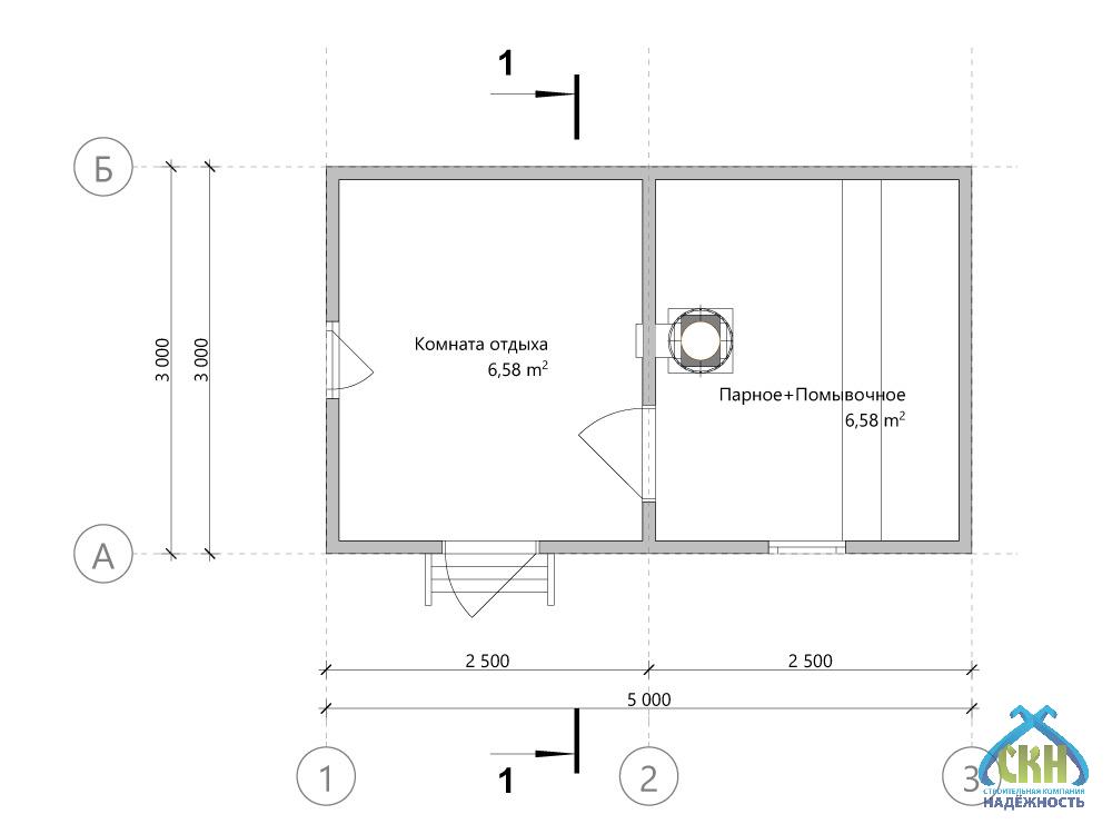 Каркасная баня 5×3 в классическом стиле занимает 13 кв. м. обладает парной и помывочной в 6 кв. м.. Простор внутри создан для комфортного времяпрепровождения. Двухскатная крыша подчеркивает традиционный стиль. В интерьере чувствуется внимание к деталям. Это место где вы можете отключиться от мира. Баня словно приглашает вас провести время с пользой для тела и души. Здесь каждый найдет уголок для себя. Тепло пара подарит чувство умиротворенности. Вода станет союзником в очищении и расслаблении.