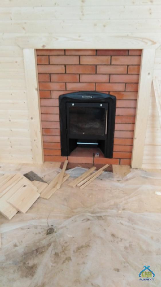 Печь встраивается в перегородку через кирпичную кладку и топится из комнаты отдыха. | |||