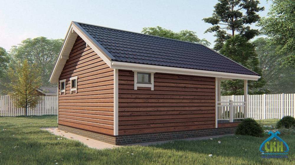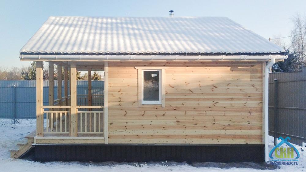 Внешняя отделка фасада - евровагонка (хвоя) 12,5х88 мм с устройством вентилируемого зазора и ветровлагозащитой. Имитация бруса в подарок при заказе комплектации "Баня под ключ"! |