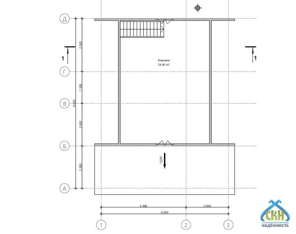 Высота - 1-й этаж 2,0 м Силовой каркас - наружные и внутренние стены из доски 50х100 мм, лаги пола, потолка и стропильной системы 50х100 мм, с шагом 590 мм. |