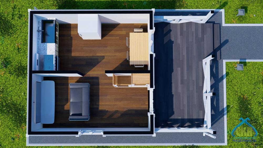 Дачный дом 4х6 — компактный проект, где каждый метр продуман до мелочей. Одноэтажная конструкция с двухскатной крышей создаёт стильный внешний вид, а терраса площадью 8 квадратов станет идеальным местом для отдыха на свежем воздухе. Внутри — просторная кухня-гостиная и одна спальня, которые обеспечивают комфортное проживание. Общая площадь дома всего 22,1 квадрата, но каждое пространство используется максимально эффективно. Доставка за 28 дней позволяет быстро начать строительство без задержек. Цена доступна, качество гарантируется — современный вариант для загородного отдыха, который сочетает практичность и уют.