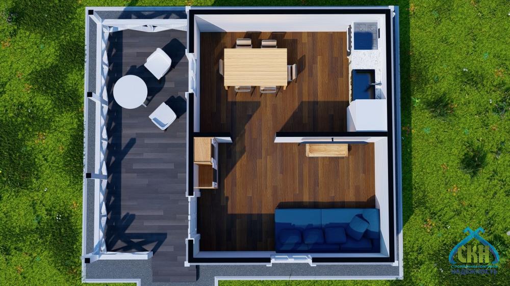 Каркасный дачный дом 6х5 отлично подходит для комфортного отдыха за городом. Общая площадь составляет 27,9 кв. м. включая жилую зону, просторную кухню и большую террасу 10,0 кв. м.. В доме один этаж с продуманной планировкой: спальня кухня-гостиная и удобный выход на террасу. Двухскатная крыша выглядит современно и повышает устойчивость к непогоде. Каркасная технология обеспечивает быстрое строительство без потери качества и комфорта. Проект сочетает практичность долговечность и выгодную цену что делает его отличным вариантом для дачи или постоянного проживания. Доставка осуществляется в течение 30 дней — осталось только выбрать проект и начать новую загородную главу.