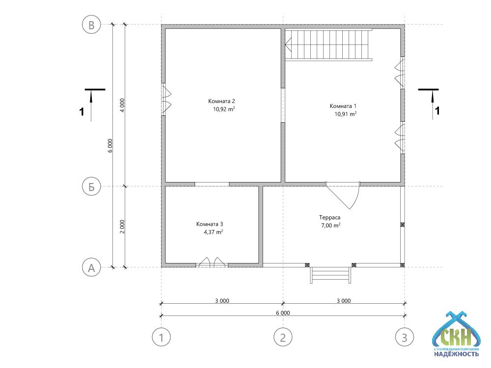 Высота - 1-й этаж 2,4 м Силовой каркас - наружние и внутренние стены 50х100 мм, лаги цокольного перекрытия 50х150 мм, лаги потолка и стропильной системы 50х100 мм, с шагом 590 мм. |