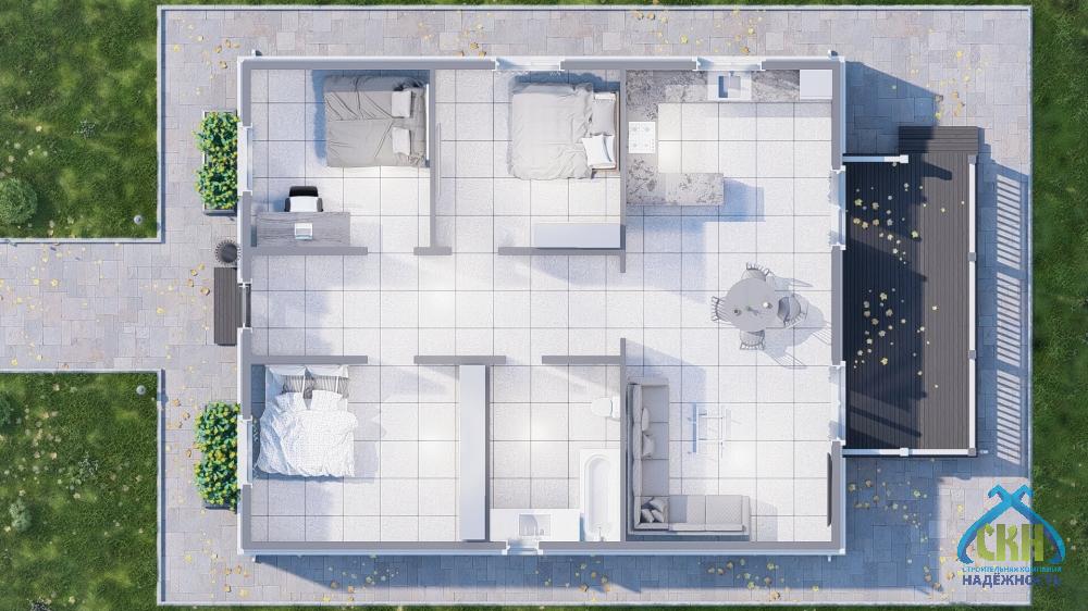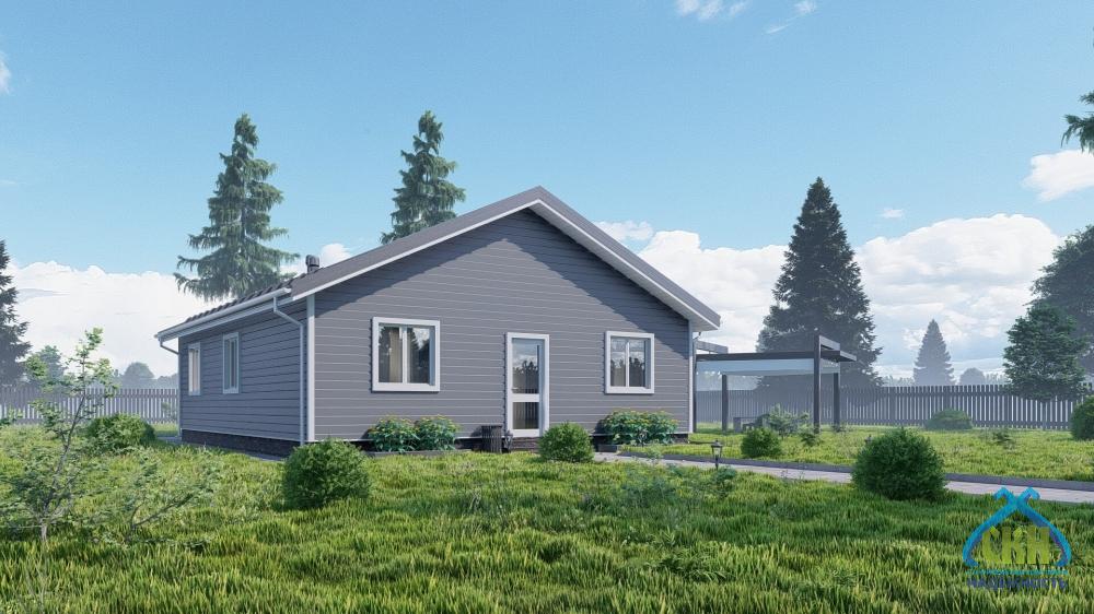 Светлый одноэтажный дом площадью 100,4 кв. м. создан для жизни, в которой важен каждый комфорт. Его архитектура, сдержанная и чёткая, воплощается в двухскатной крыше, подчёркивающей горизонты спокойствия и устойчивости. Панорамные окна стирают границы между внутренним уютом и природным пейзажем, делая каждый день ближе к естественному ритму. Кухня-гостиная 33,96 кв. м. достаточно большая, чтобы собрать родню друзей и коллег за банкетами и тёплыми обедами, а терраса 12,96 кв. м. становится его продолжением под открытым небом. Три спальни и жилая зона общей площадью 36,96 кв. м. дают достаточно места для личного пространства, а холл 12,58 кв. м. служит логичным переходом между комнатами. Санузел 3,96 кв. м. вписан в планировку без излишеств, но с вниманием к деталям. Строительство занимает 34 дня, а прозрачная цена соответствует качеству.