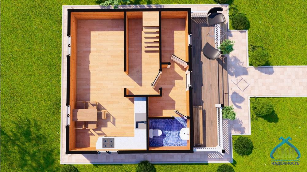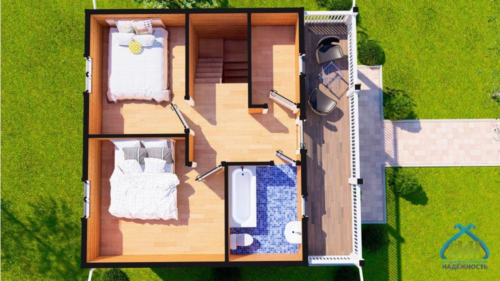 Двухэтажный дом 95 кв. м. — результат тонкого архитектурного видения и внимательного подхода к деталям. Лаконичный проект 7х7,5 метров выделяется благородной сложностью формы, её динамичные линии создают неповторимый архитектурный стиль, гармонично вписанный в окружающий пейзаж. Жилая площадь — 25, а вместе с кухней-гостиной 45 кв. м., позволяет реализовать любые интерьерные идеи. Сочетание больших окон с открытым балконом создает пространство для отдыха на свежем воздухе и любования окружающим пейзажем. Внутреннее пространство распределено с расчётом на комфорт: 3 комнаты, санузел, большая кухня 25 кв. м., холл, терраса и балкон по 10,5 кв. м. формируют уютную среду для жизни. Строительство осуществляется по договору точно в срок, с сохранением высоких стандартов и прозрачной ценой без потери качества или стиля.