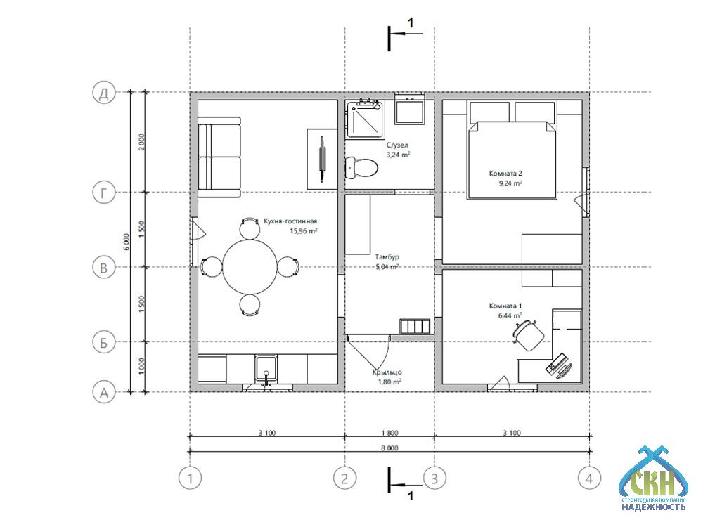 Каркасный дом размером 8х6 метров предлагает 42 кв. м общей площади, включая 15,7 кв. м жилых помещений. В доме расположены две спальни, кухня-гостиная площадью 16 кв. м, санузел (3,2 кв. м), просторный холл и тамбур. Дом разделен на две половины, что позволяет лучше зонировать общие помещения от спальных комнат. Строительство выполняется за 30-40 дней — быстро, точно, без задержек. Цена проекта оправдана качеством материалов, долговечностью конструкции и рациональным использованием каждого метра. Такой дом станет надежным решением для тех, кто ценит комфорт, практичность и четкий график реализации.