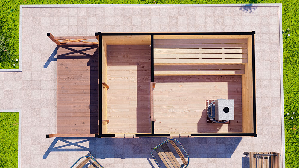 Модульная баня 2х4 — компактное архитектурное строение, где каждая квадратная метра продумана до мелочей. Совмещённая парная и моечная обеспечивают оптимальный микроклимат, а отдельная комната отдыха с удобной мебелью и вентиляцией создаёт ощущение уединённости и комфорта. Терраса с обрамлением из натурального дерева гармонично вписывается в ландшафт, усиливая ощущение пребывания на природе. Стены выполнены из профилированного бруса с утеплителем из минеральной ваты, а крыша покрыта металлочерепицей с водостоком — всё это гарантирует долговечность и энергоэффективность.